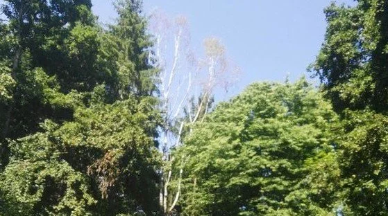 Gestern betrachtete ich die Bäume genauer, alle sind grün und strotzen vor Kraft. Dazwischen aber sehe ich zum ersten mal den kranken Baum, den grauen Baum.