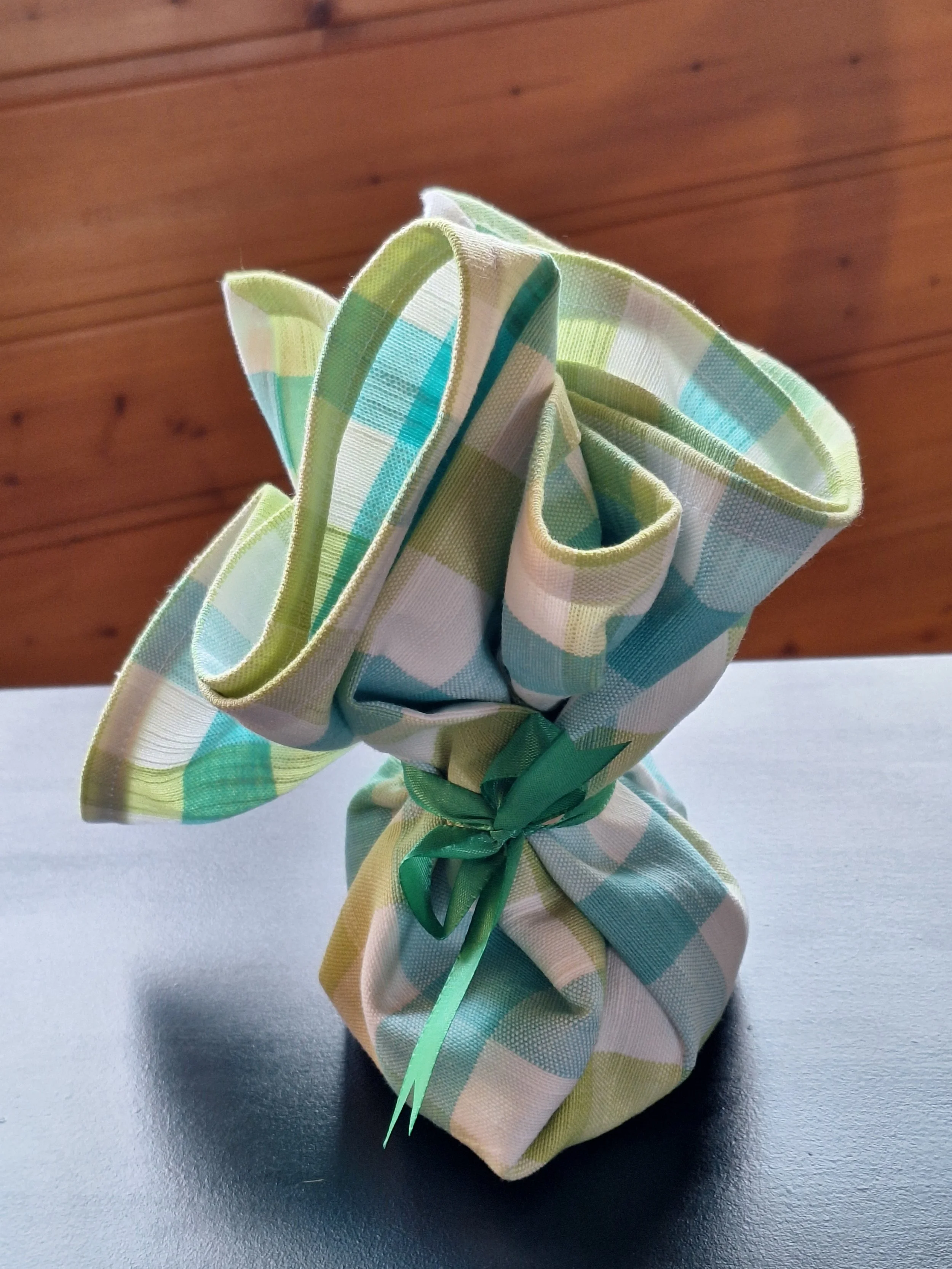 Ein Osternest als Lotusblüte falten ...... oder ein Eierlikörfläschen einpacken ....... oder einfach nur zu einem Ostersackerl binden.